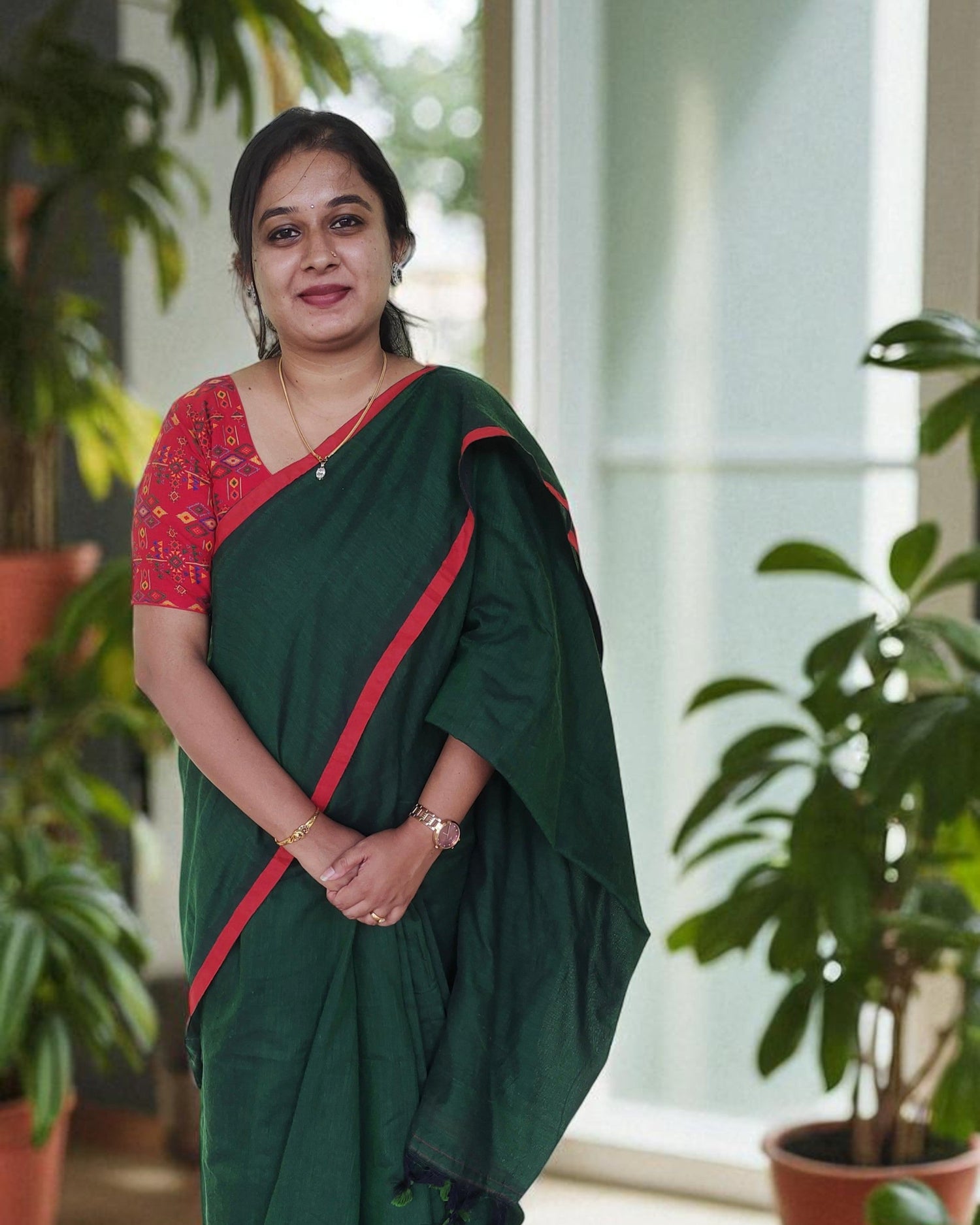 Mysore Semi Crepe Elegant border design - Bottle Green with Red